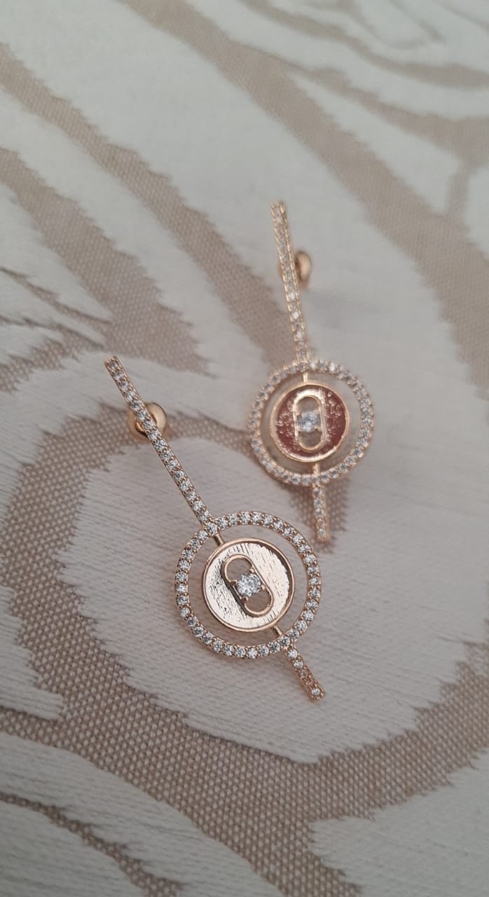 Boucles d’oreilles en alliage cuivre, zinc et or 14 carats serties de zirconium . Délicates et distinguées, elles affineront une tenue élégante !