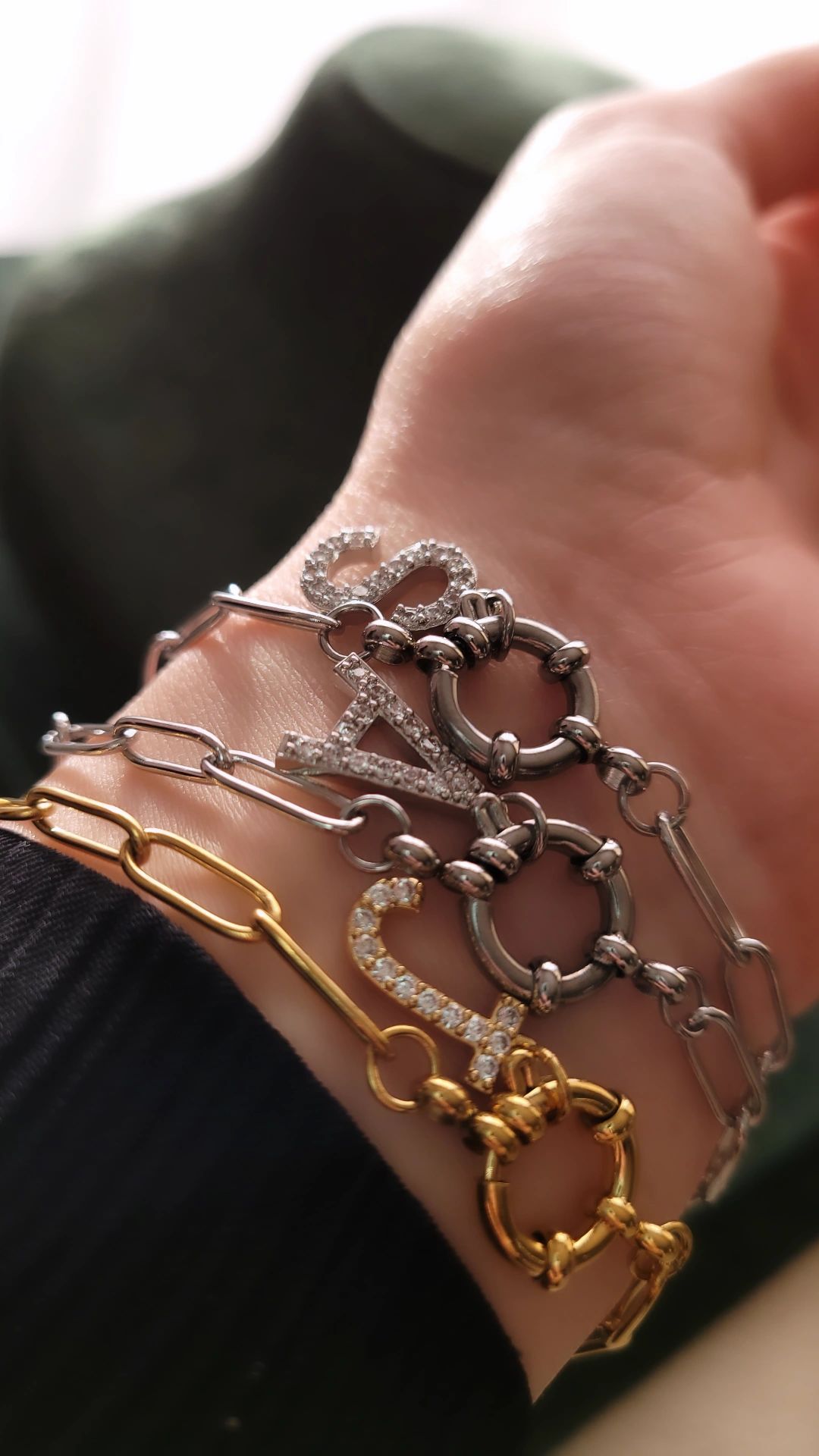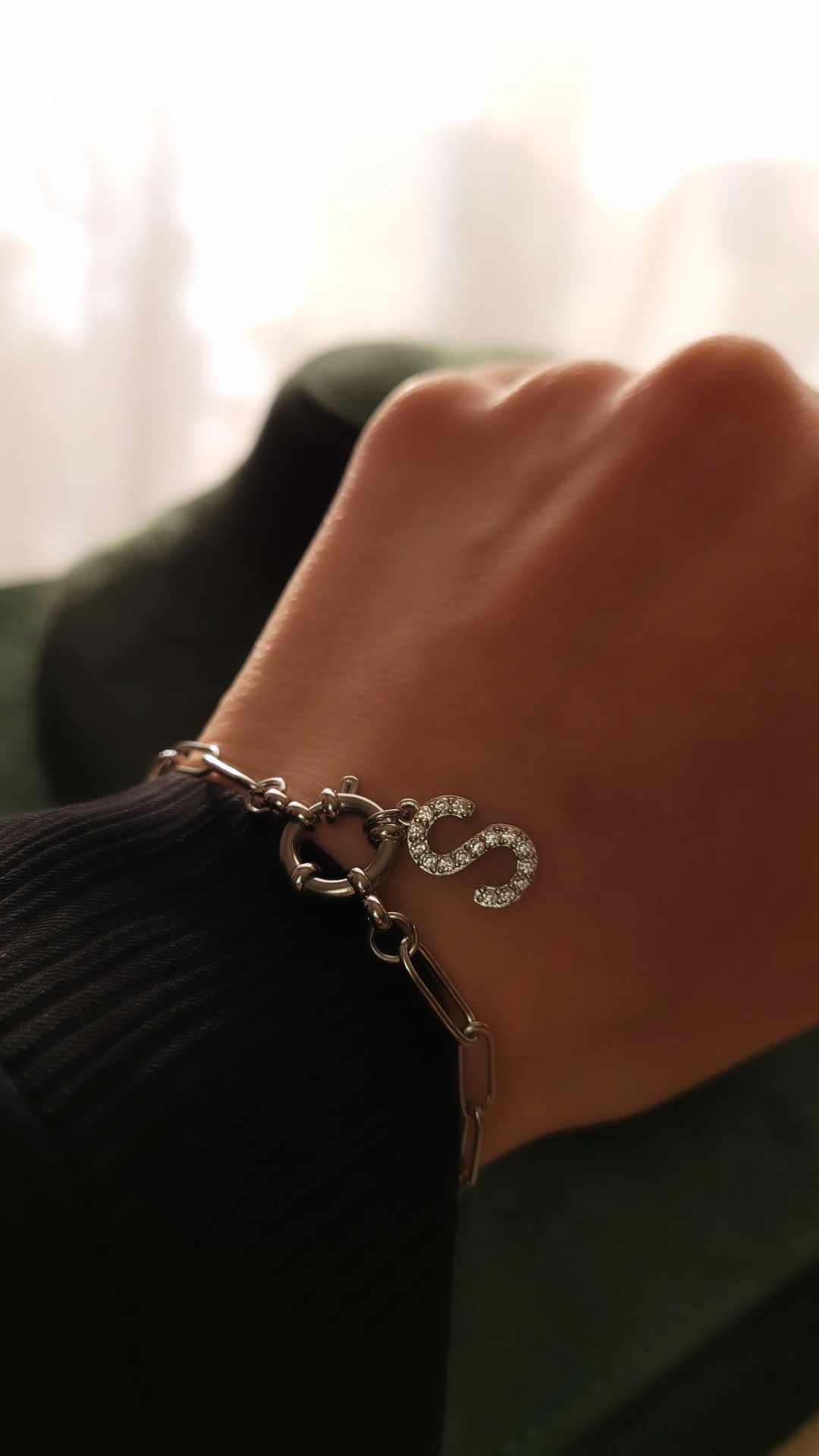 Gourmette maille enchaîné en acier inoxydable, lettre au choix en zirconiums sertis